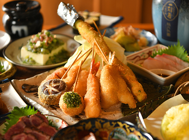 (土・日・祝)11:00~23:30 (ラストオーダー:22:30) - 串かつと煮込み、下町の旨さを極める大衆酒場。揚げたての串かつは1本50円から。サクッと香ばしい衣に包まれた食材は旨味がジュワッと広がり二度漬け禁止の特製ソースが絡むたびに、思わず笑顔になる下町の味。自慢の煮込みは2種類。